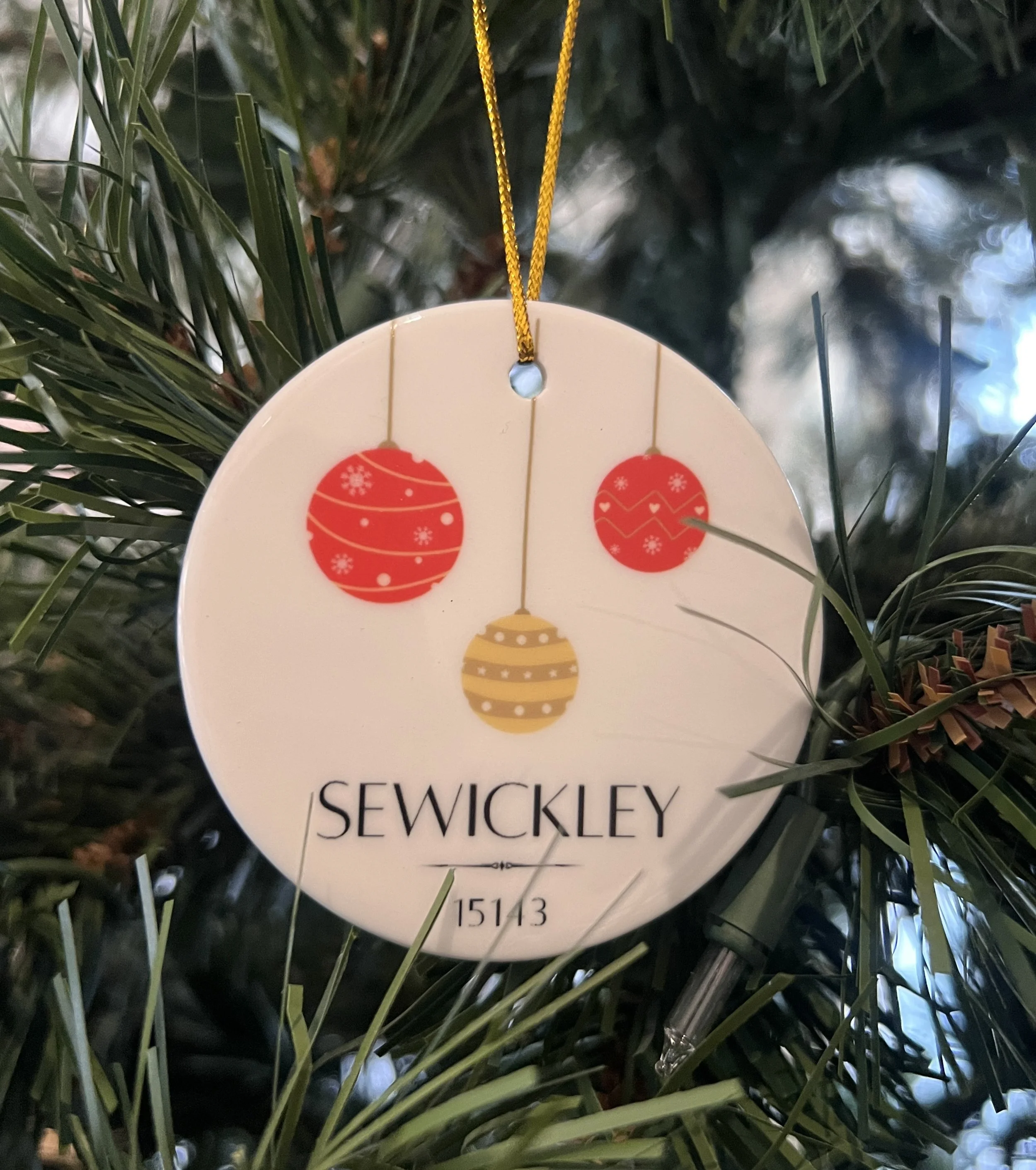 Sewickley Christmas Cheer Ceramic Ornament (local pickup)